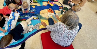 Pour cette séance de reprise, les enfants ont embarqué sur le raconte-tapis "Bateau sur l'eau", un outil d'animation illustrant l'album de Martine Bourre, adaptation de la célèbre comptine.